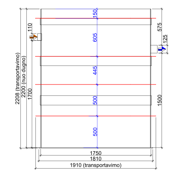 - Matmenys: aukštis ~2,2 m, skersmuo ~1,8 m